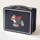 This is a standard metal lunchbox that appears to work just fine. We designed this box ourselves with an uploaded photo and custom text on the front and back. It looks absolutely beautiful except the front of the lunchbox is not centered like it shows in the photo. The print borders don't align with the inset flat part of the box where the preview photo online showed it perfectly centered in there. The back looks nice and centered though.