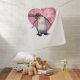 Animal Parade Romantic Penguin Love and Hearts Be Mine Baby Blanket features our fun artwork of a cute penguin holding a pretty rose in its mouth with layered purple, red, and pink hearts with the words Be Mine. Wrap your new baby in lots of love with this adorable penguin in love.