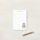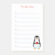Penguin bird and calligraphy on white lined Notes.