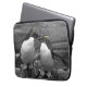 This striking black-and-white penguin portrait captures connection, loyalty, and personality — with just a touch of colour to make it unforgettable.