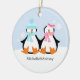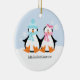 Customizable Christmas ornaments featuring an adorable couple of penguins.
