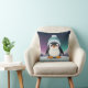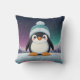 Penguin Cute Kawaii Blue Cap Print Throw Pillow