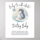 Baby Shower invitation featuring an adorable watercolor arctic baby penguin on floe. Winter Baby Shower. Arctic Penguin baby shower theme.