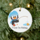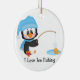 Penguin Ice Fishing Ceramic Ornament