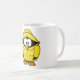 A cute penguin all set for the rain dressed in a raincoat. This penguin in a raincoat is so adorable. The raincoat is yellow and you can see the big penguin eyes under the hood. This design looks great on this mug. Perfect for yourself or as a gift