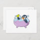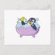 Penguin in Bathtub with Duck Postcard