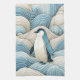 This design showcases a serene penguin at the center of an ornate aquatic dance, surrounded by waves crafted in the intricate style of Japanese woodblock prints. The soothing palette of blues and creams captures the tranquility of the ocean, while the swirling lines and patterns convey movement and depth. This piece is a modern take on traditional art, perfect for those who appreciate the fusion of cultural aesthetics with wildlife themes. It is an inviting blend of calm and craftsmanship, ideal for a space seeking a touch of elegance and peacefulness.