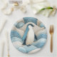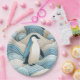 Penguin In Cream Blue Abstract Waves Paper Plates