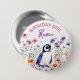 Penguin in Flowers Birthday Girl Personalized Button