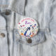 A cute penguin surrounded by pink, blue, orange and purple flowers watercolor illustration girl's birthday party personalized birthday girl button.