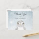 Thank your guests for celebrating the mama to be! This thank you postcard features a baby penguin wearing mask. Personalize with your information or click "Click to customize further" to edit font styles, size and colors.