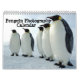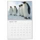This is a calendar comprised of different images of various types of penguins. Penguins included in these photographs include king penguins, emperor penguins, chinstrap and much more.