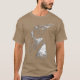 My 11 yo wore adult XL (5’7” 165#). The 8yo is small framed. She wore adult small and tied it in the back. Grandma wore adult large with long sleeve shirt underneath. Tall girl adult medium. Dark haired male adult large. Good quality dark Heather gray, Gildan brand shirt. -it was next up from basic choice and cost about $20 per shirt. Not too thick or thin. Washed and dried well, no major shrinkage. Not see-through. Can wear a bra under it fine. Screen print is just as shown and well done, front and back.