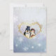 Sweet pre-wedding dinner party invitation honoring the Bride and Groom to Be feature cute Penguin bride and groom in their wedding attire with winter snowflake blue and white background with a touch of purple. . Back of card in matching snowflake pattern and bride and groom penguins in a gold heart. Customize the rehearsal dinner invitation with the Bride and Groom names, then add the time, date, and location, as well as RSVP contact information. Matching theme available on other products in my store.