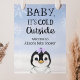 Welcome guests to your baby shower with this adorable poster, featuring a cute penguin, snowy background and text "baby it's cold outside" Add the guest of honor's name, shower date and custom welcome text using the fields provided.