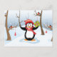 Penguin with Christmas gift winter landscape Holiday Postcard