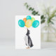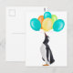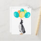 A charming postcard featuring an adorable penguin holding a bunch of colorful balloons in his beak. Against the backdrop of the penguin's sleek black and white feathers, the vibrant balloons create a cheerful and whimsical scene. Whether sent as a greeting, a token of friendship, or a simple reminder to smile, this delightful postcard is sure to brighten anyone's day. With its cute design and heartwarming message, it's the perfect way to spread joy and happiness to friends and loved ones near and far.