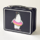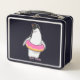 This is a standard metal lunchbox that appears to work just fine. We designed this box ourselves with an uploaded photo and custom text on the front and back. It looks absolutely beautiful except the front of the lunchbox is not centered like it shows in the photo. The print borders don't align with the inset flat part of the box where the preview photo online showed it perfectly centered in there. The back looks nice and centered though.