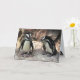 This birthday card features two adorable African Penguins standing on a rocky ledge. They are aquatic, flightless birds whose wings have become flippers. Each has a black stripe and black spots on the chest. The pattern of spots is unique for every penguin, just like human fingerprints. They have pink glands above their eyes and pink and black feet. The text can be customized for your special occasion.