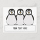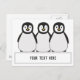 Three cute Penguins with a box that's ready for you to add your own text message or greeting. Three cute and adorable chubby penguins cartoon graphic illustration design in black and white.