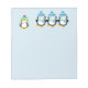 Cute holiday notepad featuring penguins wearing hats and scarves.