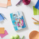 I was super excited when I got my cover in. It is attached by a magnet across the edge. I don’t think it will be very protective but it is very cute. I’m going to keep my iPad in a sleeve and use this face cover while I have it out. It folds to create a tilt for better viewing and to keep the iPad at a slight angle for typing. The colors are bright and it is fun. I’ve really enjoyed it. The personalization looks like amazing. It is the same color as the picture and is the same brightness. Well done! Very nice.