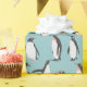 Penguins - collection of illustrated penguins with coloring of emperor and king penguins. Arranged in various poses and positions. Set on a half baked blue background.