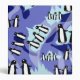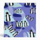 Cold icebergs and watery ponds behind three penguin friends in a repeating pattern.