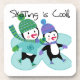 Two penguins ice skate on the frozen pond dressed in striped, colorful winter hats, scarves, and mittens and black text reads Skating is Cool on skating theme T-shirts, mugs, cards, bags, keepsakes, pillows, hoodies, stickers, and much more!