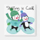 Two penguins ice skate on the frozen pond dressed in striped, colorful winter hats, scarves, and mittens and black text reads Skating is Cool on skating theme T-shirts, mugs, cards, bags, keepsakes, pillows, hoodies, stickers, and much more!