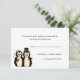 Cute winter wedding response RSVP card done in white, with adorable country graphics of bride and groom penguin, in the bottom left corner. Customize the text to suit your needs. Great with our matching penguin winter wedding products.