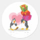 This design is penguins with gifts. There is two penguins and the are carrying gifts. This penguins with gifts design looks great on this Stickers