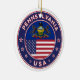 Badge of Pennsylvania with flag of Pennsylvania and flag of USA colors, rounded shape.