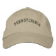 A Basic Adjustable Cap embroidered with the (customizable) text Pennsylvania. Select the hat and text color and style of your choice.