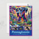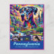This postcard is not just a piece of paper, but a canvas where the spirit of Pennsylvania is artistically immortalized. The Great Dane is depicted with noble grace, and the Mountain laurel blooms with delicate detail. The surreal illustrations of The Liberty Bell, Eastern State Penitentiary, and Fallingwater are rendered with precision, capturing their essence and historical significance. The vibrant colors and intricate details invite the viewer on a visual journey through Pennsylvania's storied past and architectural wonders.