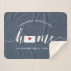 Show some home state pride with this cute rustic blue throw blanket featuring "home" in white calligraphy script lettering with a silhouette map of the state of Pennsylvania standing in for the letter "O." A red heart illustration inside the state map completes the design; you can change the position of the heart to your home city by opening the design tool and dragging the heart shape to your favorite spot. Personalize with your home city, family name and year established to create a perfect and memorable housewarming gift or addition to your new home.