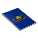 This design features the state flag of Pennsylvania, officially known as the Commonwealth of Pennsylvania. The flag was first adopted in 1778 and it features the coat of arms of Pennsylvania, an official emblem of the state. The state motto is also displayed: "Virtue, Liberty and Independence". Perched on top of the coat of arms is a bald eagle, which is intended to represent Pennsylvania's loyalty to the United States. Pennsylvania is, indeed, one of the 13 original founding states of the Union. The two most populous cities in the state of Pennsylvania are Philadelphia and Pittsburgh. The state capital, however, is Harrisburg.
