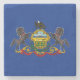 This design features the state flag of Pennsylvania, officially known as the Commonwealth of Pennsylvania. The flag was first adopted in 1778 and it features the coat of arms of Pennsylvania, an official emblem of the state. The state motto is also displayed: "Virtue, Liberty and Independence". Perched on top of the coat of arms is a bald eagle, which is intended to represent Pennsylvania's loyalty to the United States. Pennsylvania is, indeed, one of the 13 original founding states of the Union. The two most populous cities in the state of Pennsylvania are Philadelphia and Pittsburgh. The state capital, however, is Harrisburg.