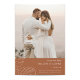 This exquisite invitation captures the essence of your special day with its clean lines, sophisticated typography, and subtle tropical leaf sketches. The rich bronze or burnt orange hue sets the tone for a warm and inviting celebration.