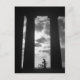 An amazing black and white silhouette photograph of Penshaw Monument, Tyne and Wear, England showing the huge height of the stone columns in comparison to the youth with a BMX/mountain/Bike also showing stormy skies in the early evening photo taken by the English Photographer Dave Fletcher
