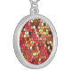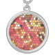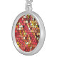 This brilliantly colored necklace features a flowing mosaic pattern of thousands of pentagons in shades of red, pink, orange, brown, yellow, gold and white!