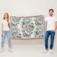 Peonies and butterflies block print, black and whi throw blanket