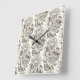 Peonies and butterflies block print, umber on off square wall clock