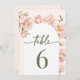 Elegant pink watercolor floral peonies blossom wedding table numbers.