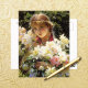 A fine art postcard with the painting by Charles Courtney Curran (1861-1942), Peonies (1915). An American Impressionist painter of figures and landscapes. A beautiful young woman holding a bouquet of peonies in white and pink.