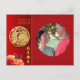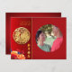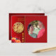 Design of Chinese peonies + golden Rabbit paper-cut (image printed) + Happy New Year in Chinese + customizable 2023 and small "happy New Year" onto a red background + decorated photo frame for your own photo in front. You can easily change photo by clicking the customize button. Design on horizontal holiday postcard. Matching square flat card and greeting card. Perfect for a family Chinese New Year of The Rabbit 2023.