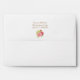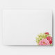 Beautiful peonies and Hydrangea grace this envelope to match with your wedding invitation. Watercolor floral in pink, red and green in a very classic, English romantic style.. This elegant artwork appears on the right corner of the envelope. The back flap has optional place for address, names or initials with floral motif beneath it. When back flap of the envelope is opened, a lovely display of flowers and blue butterfly is revealed. A wonderful presentation for your wedding stationery suite. Original watercolor artwork and design by Audrey Ascenzo.