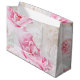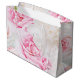 This large size gift bag is shown in a lovely pink white peonies print design.