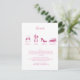 Details card with wine glasses toasting, silverware for dinner, shoe for dancing and old fashioned car for goodnights!