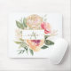 Peony and Gold Flowers Monogram Name Mouse Pad